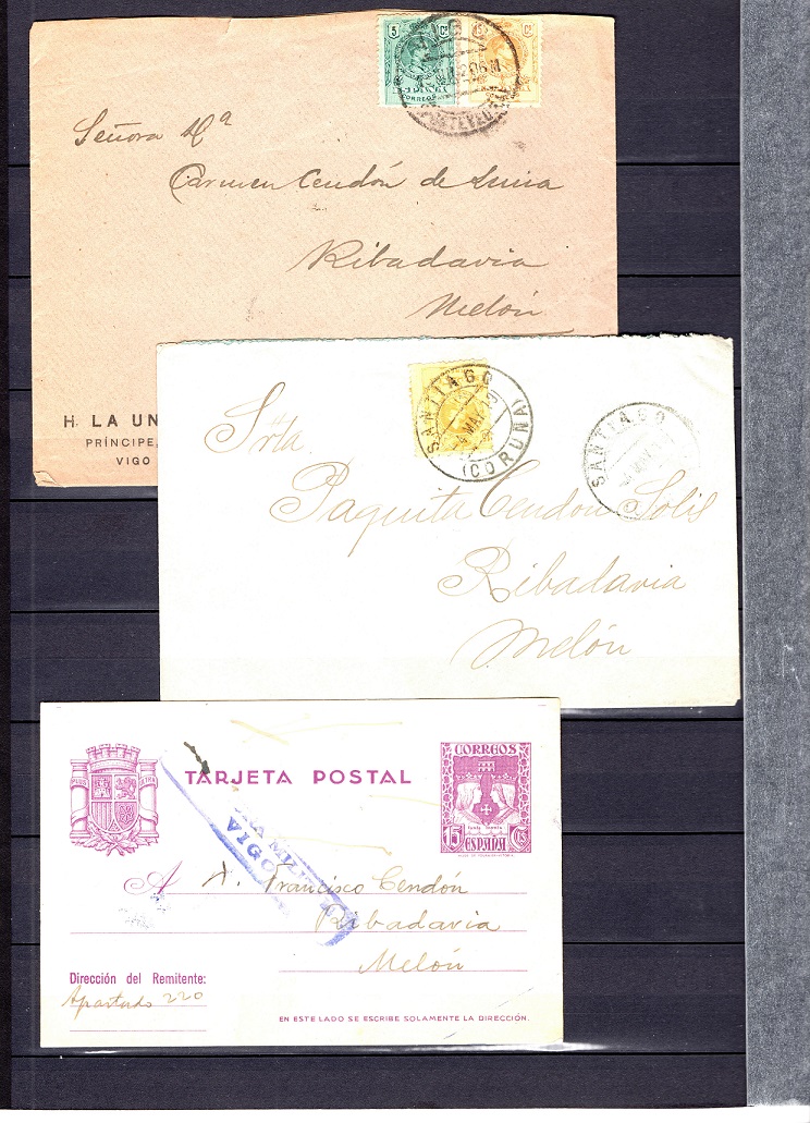 Pues me parecen bonitas sobretodo las dos cartas del 15+5, adaptandose al cambio de tarifas de mayo de 1920. Todavia debian estar esperando sellos de 20 centimos en Galicia