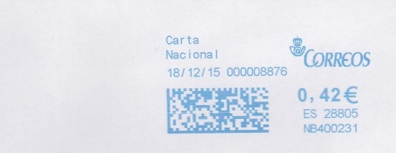 Efectivamente Ramko, el logo es el mismo, pero en Español. Y el nº de matricula es del lote nuevo de franqueadoras Neopost, NB400224 . Se han echo 18613 franqueos a fecha 18/12/15. ES 18210. Un saludo y gracias por hacer ameno este hilo.