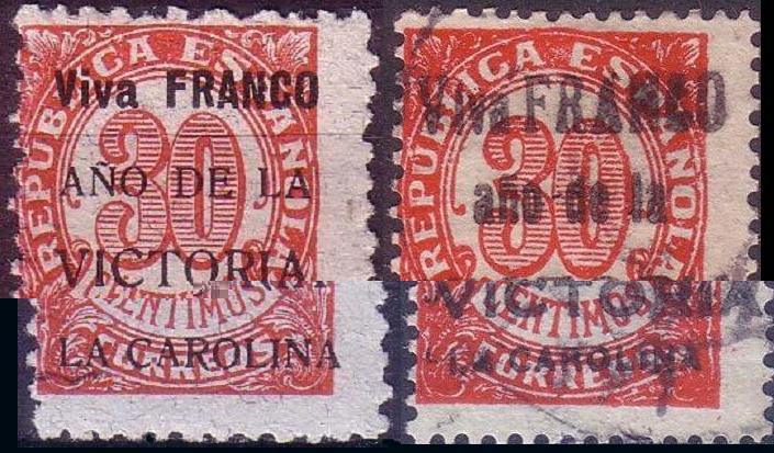 Tengo 2 sellos de este nº y los 2 tienen la misma sobrecarga, la cual habia considerado como falsa comprobandola con una prueba de impresión de la sobrecarga que consideraba como autentica.