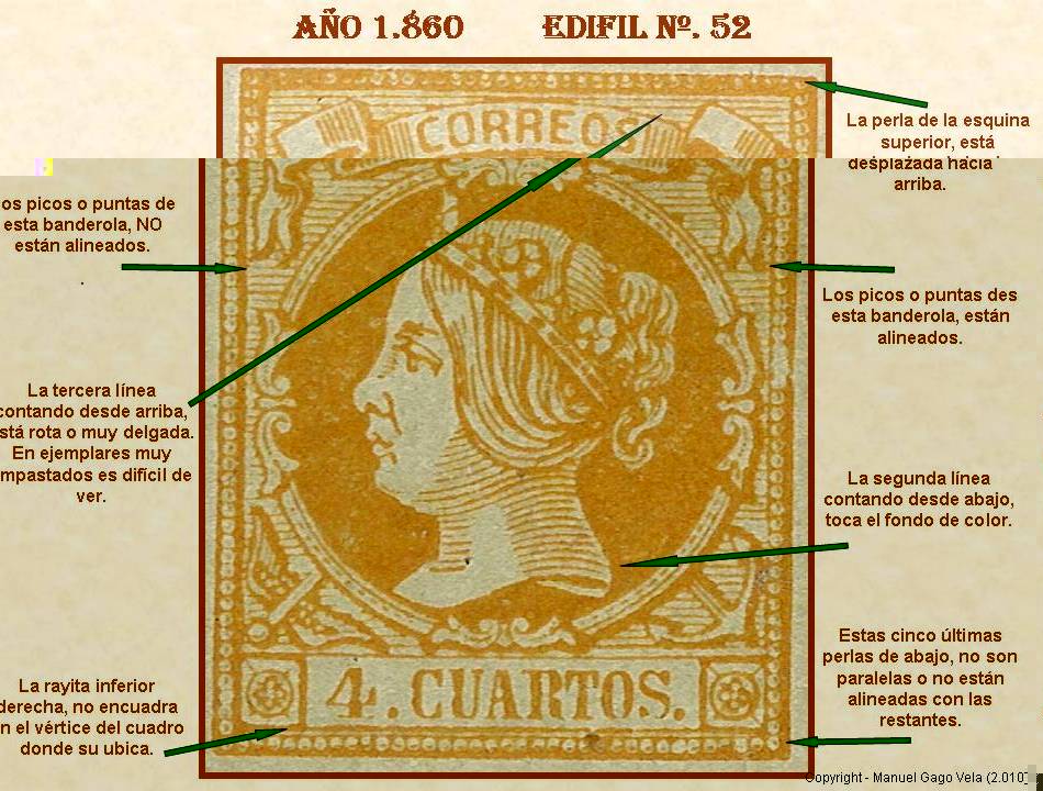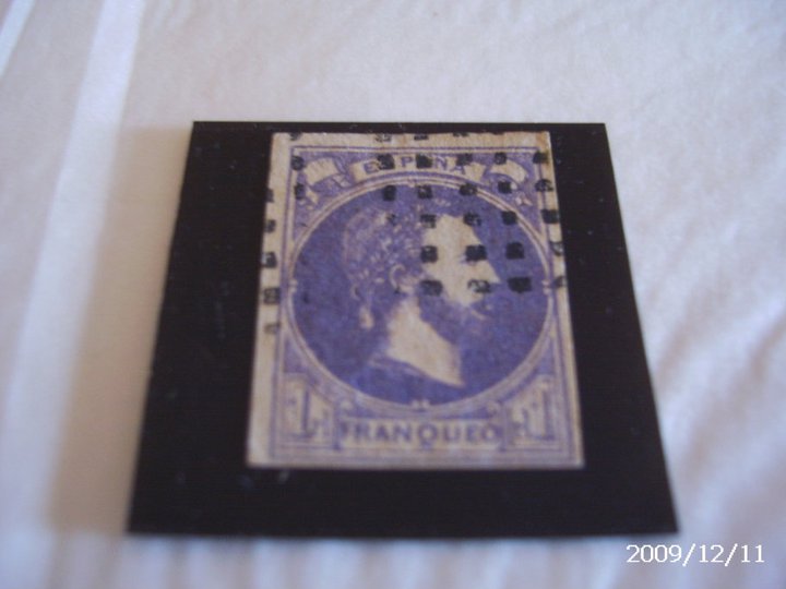 Hola amigos, pille un lotecillo y este lo veo un poco raro, aunque tal vez solo sea cosa de que este un poco empastado, le veo diferente la diadema y incluso el 4, no recuerdo si salio la ficha con las marcas de este sello, aunque creo que no.