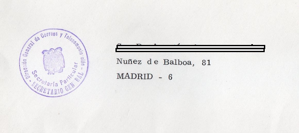 SERVICIO DE CORREOS. El remitente es el Secretario General de Correos y Telecomunicaciones, que es el que pone el tampón. Muestro sobre y sello de armas. SECRETARIADO GENERAL / Secretaría Particular. Creo que debe ir en este hilo.