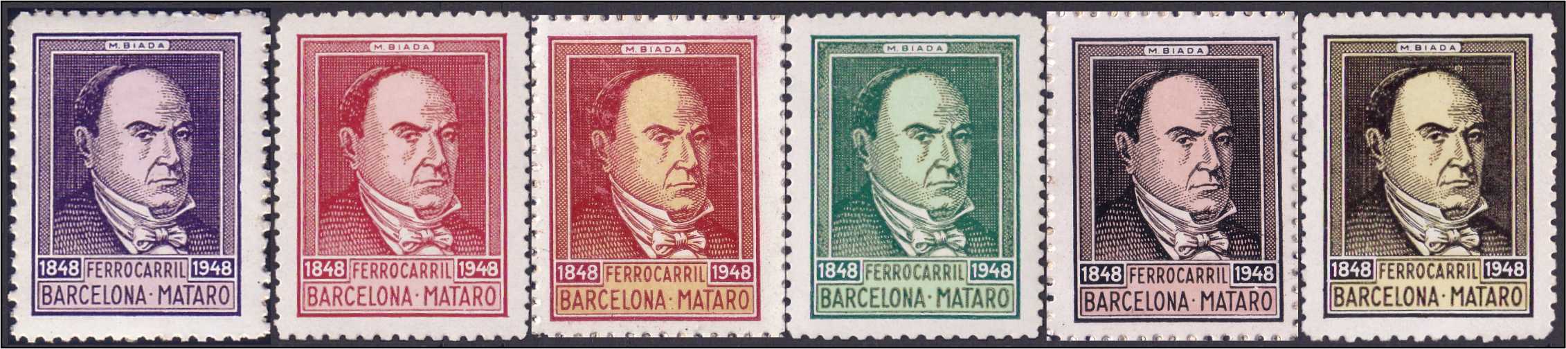 Siguiendo con Mataró, pongo las ya muy conocidas viñetas del Centenario del ferrocarril, que se celebró en el año 1948