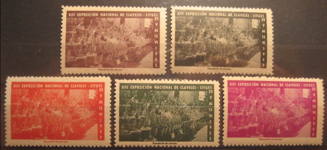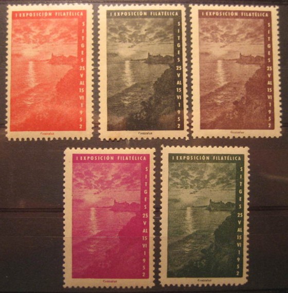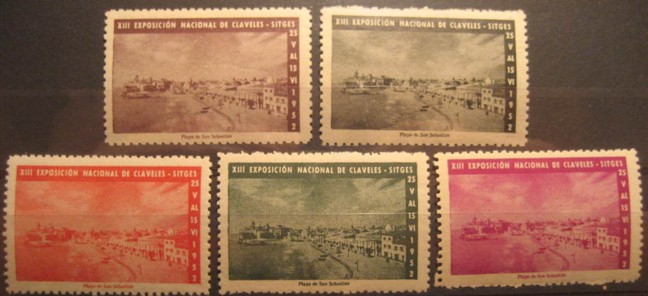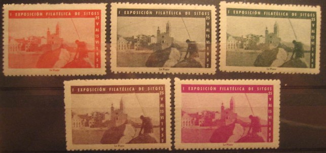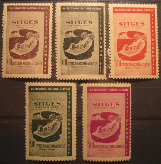 Vi que no ha salido nada de SITGES (Barcelona). Esta población emitió una buena cantidad de viñetas por la Exposicion de los claveles del año 1952. Diversas vistas en varios colores: rosa, naranja, castaño, verde y pardo.