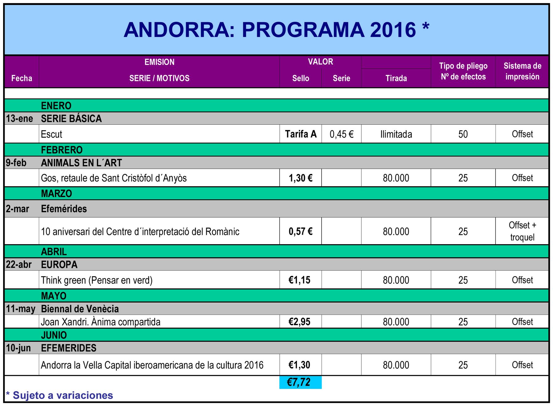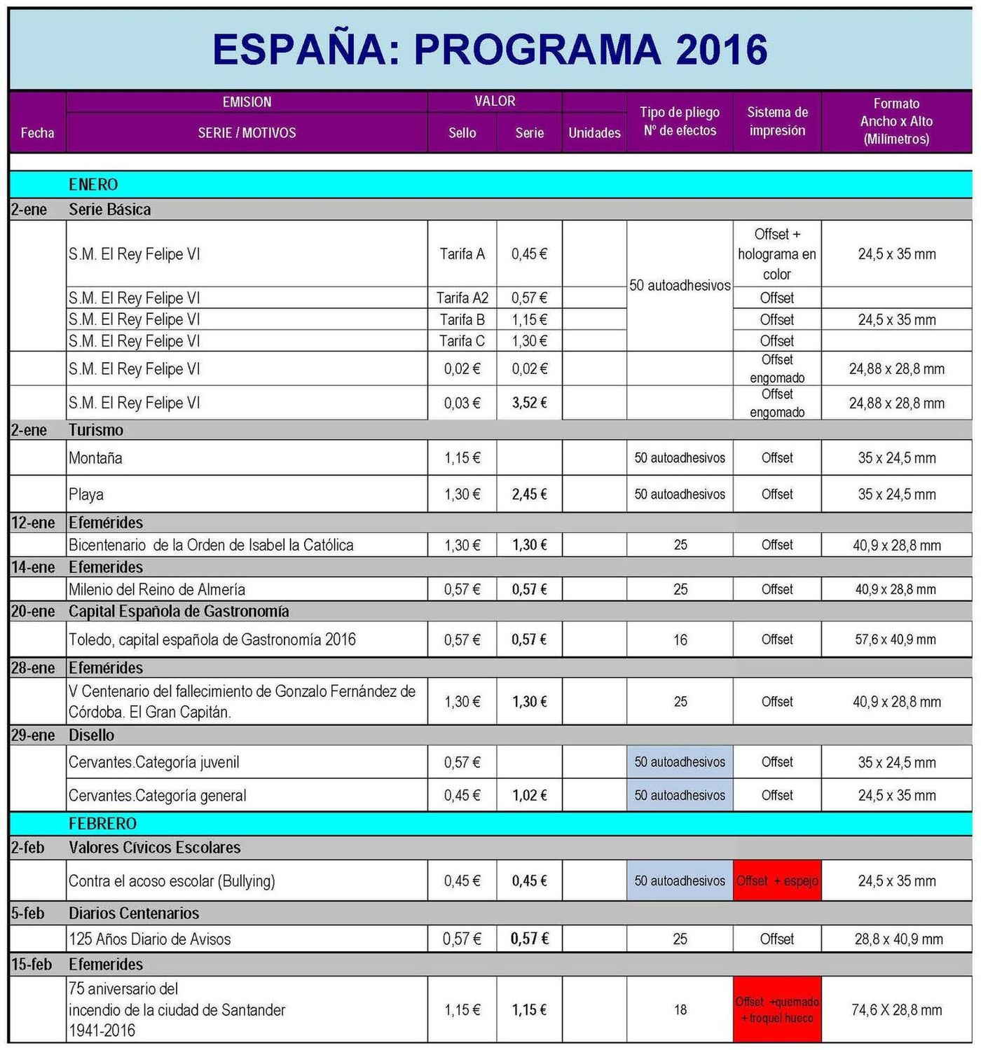 Re: EMISIONES ESPAÑA Y ANDORRA ESPAÑOLA 2016