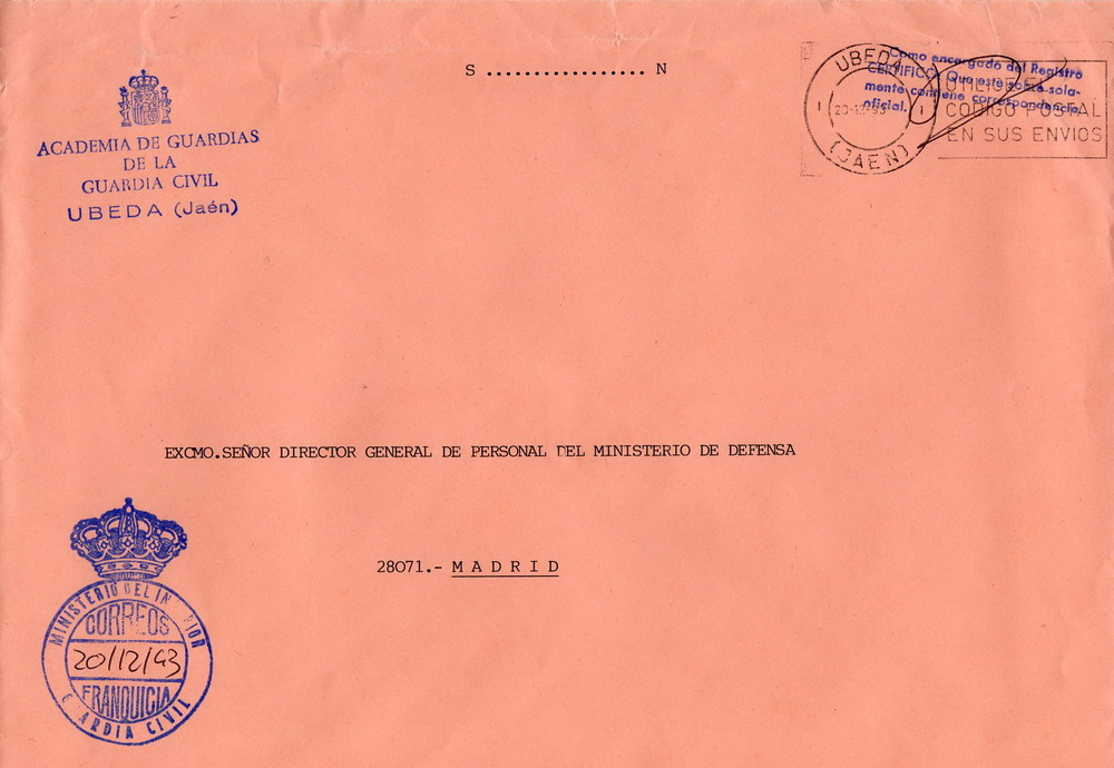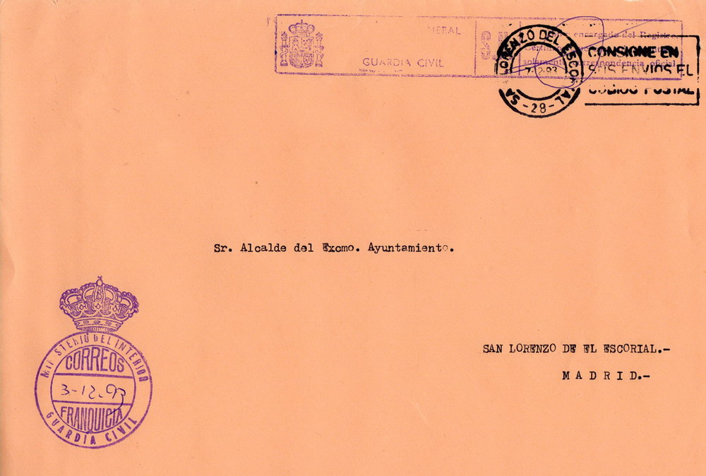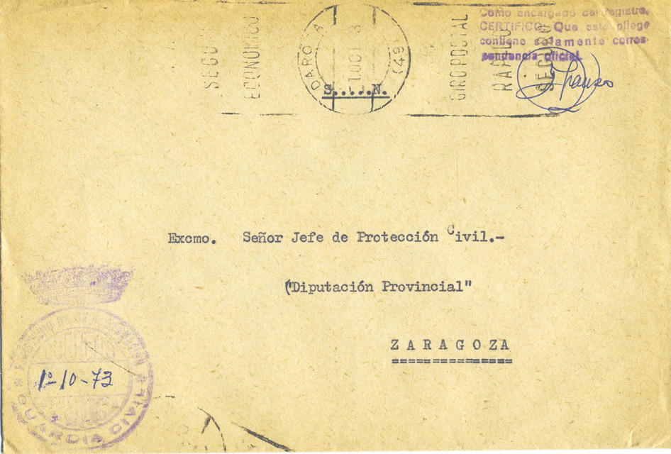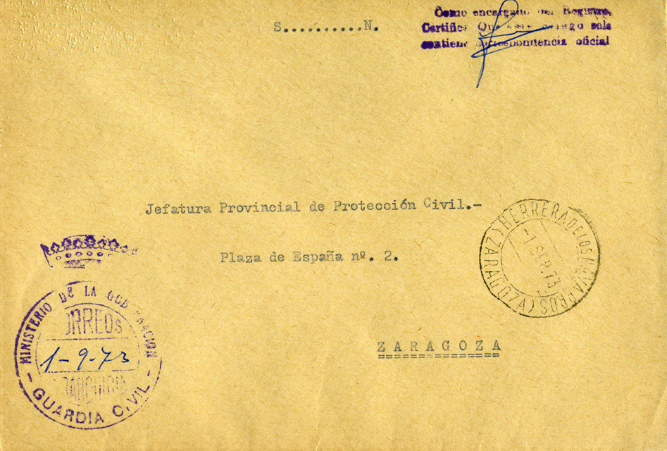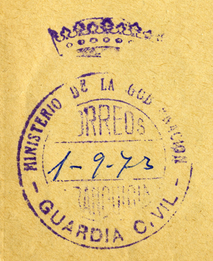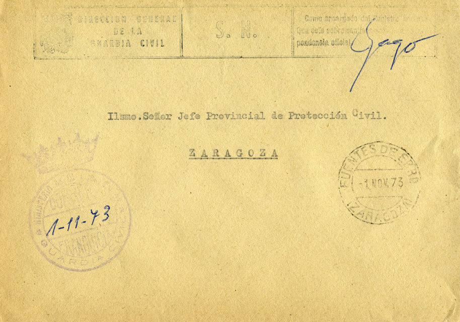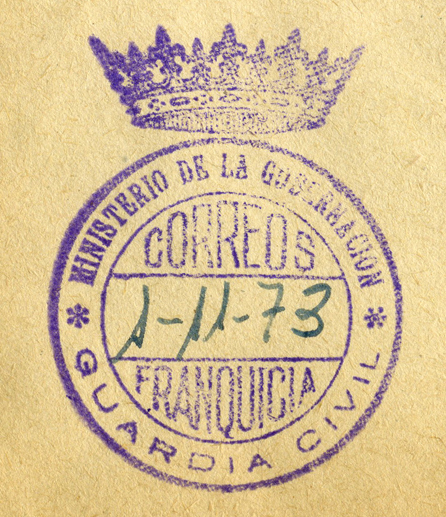 Franquicia de la Guardia Civil, del puesto de Daroca (Zaragoza), del 1 de octubre de 1973.