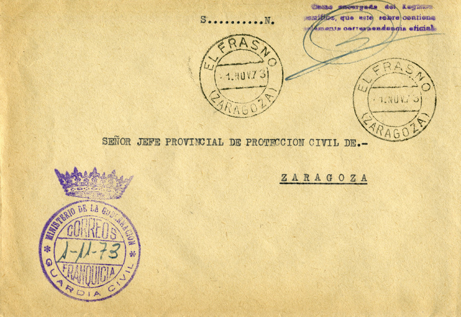 Franquicia de la Guardia Civil, del puesto de El Frasno (Zaragoza), del 1 de noviembre de 1973.