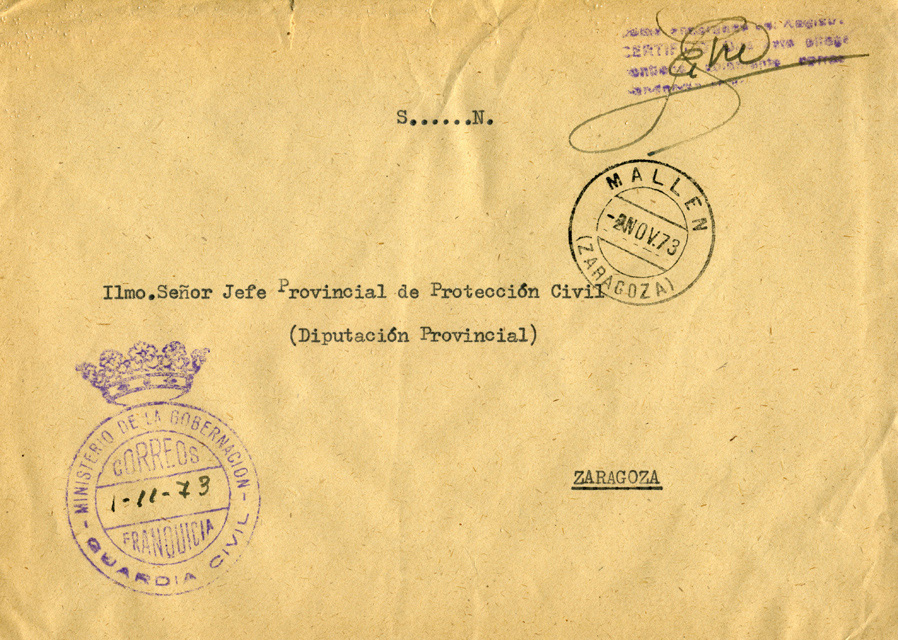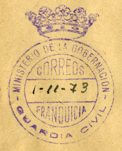 Franquicia de la Guardia Civil del puesto de Mallén (Zaragoza), del 1 de noviembre de 1973.