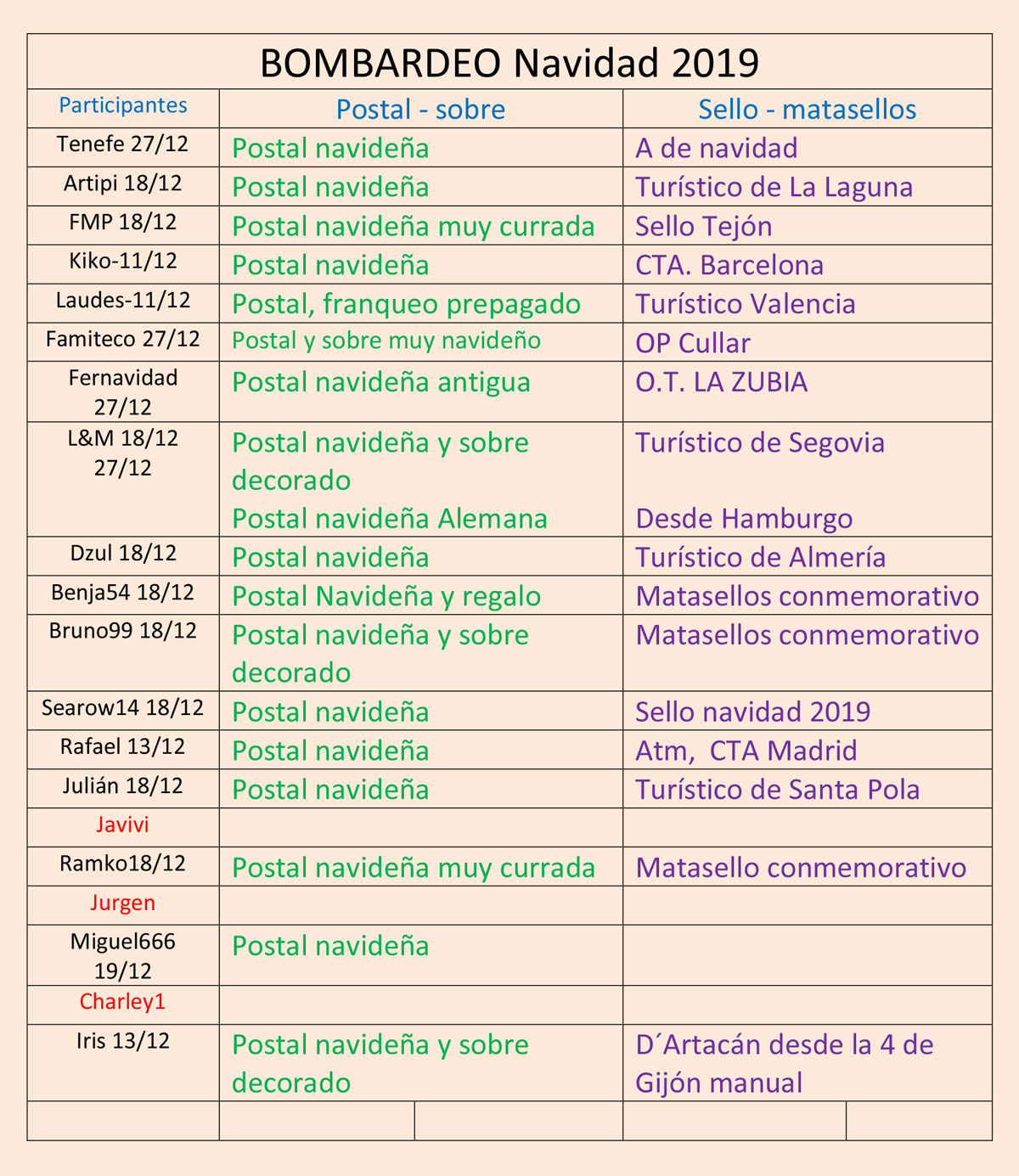 Re: Bombardeo Navidad 2019