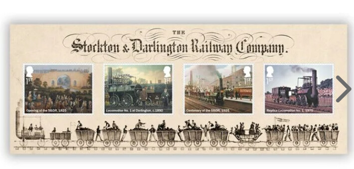 Sellos especiales que marcan un momento de la historia de la locomotora de vapor, 200 años después, un viaje que cambió el mundo