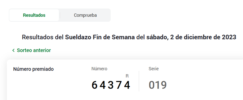 El número ganador del sorteo ha sido el 64374. Por tanto el ganador del sorteo es el número 74