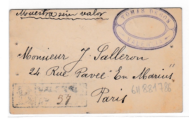 Certificado de Valencia a París, con dos sellos de 25 cts.