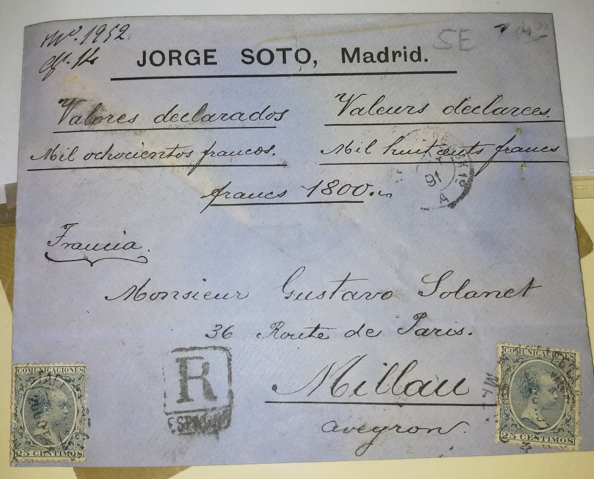 A ver si me podéis echar una mano. Tengo esta carta con el primer sello de fechas del Congreso, el cual funcionaba de franquicia. Se trata de un sobre oficial (tiene lacre al dorso) fechado el 1 de mayo de 1893. No es por tanto una carta de un particular que aprovechó el servicio de correos de la estafeta del Congreso. ¿Por qué creéis que está franqueada? ¿exceso de peso?