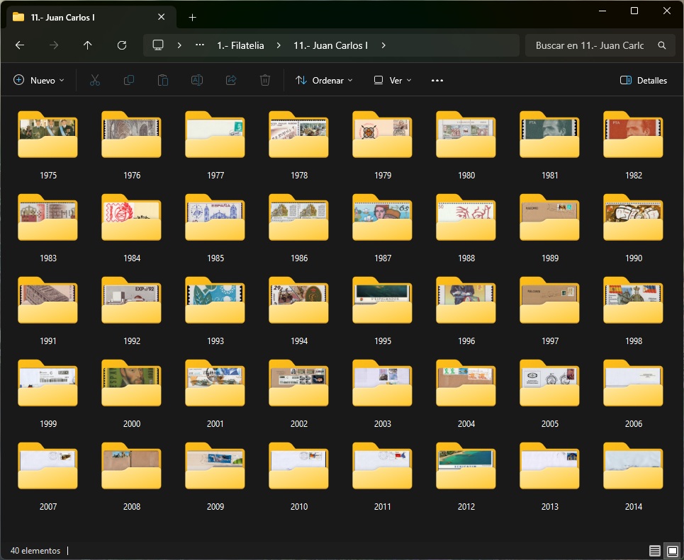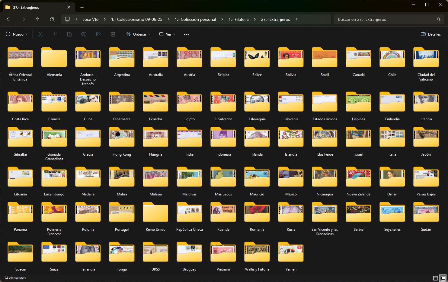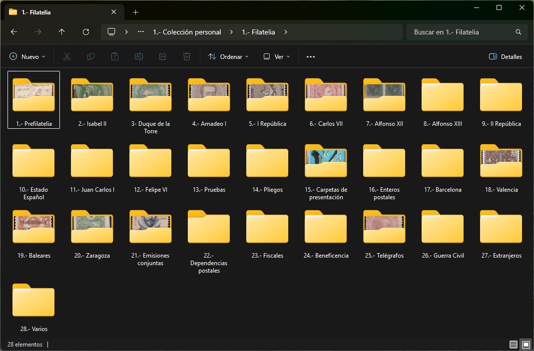 Yo también digitalizo y guardo en el ordenata todas las cartas que recibo. Lo que pasa es que en mi caso, y máxime con las cartas modernas, lo que menos me interesa siempre de las cartas son los sellos. Por ello, el sistema que yo utilizo para clasificarlas es totalmente contrario al tuyo, y me imagino que no tiene un interés más que meramente personal; me vale a mí, pero dudo que a nadie más, y creo también que probablemente cada uno de nosotros tendremos sistemas propios, muy diferentes unos de otros.