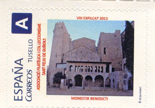 El segundo de los sellos indicados en el mensaje anterior reproduce el Antic Monestir Benedicti de Sant Feliu de Guíxols, en cuyas salas de exposiciones se desarrolló la exposición.