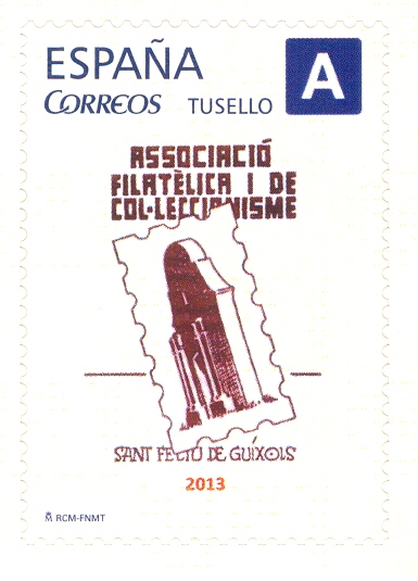 Y el cuarto y último sello de los editados con motivo de la celebración de exposición que estoy comentando reproduce el logotipo de la Associaicó Filatèlica i Col·leccionismo de Sant Feliu de Guíxols.