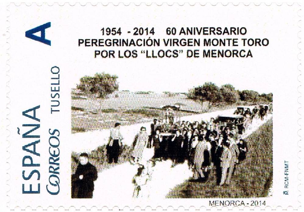 Nuevo sello en Menorca (Baleares) y que se podría decir de la misma serie del mostrado en el post de día 3 de diciembre sobre "La Virgen de Monte Toro" ya que es de los mismos peticionarios y motivo. En este caso el sello reza: "60 Aniversario de la peregrinación Virgen de Monte Toro por los llocs de Menorca"; y aunque ponga 2014, ya lo tienen en sus manos.