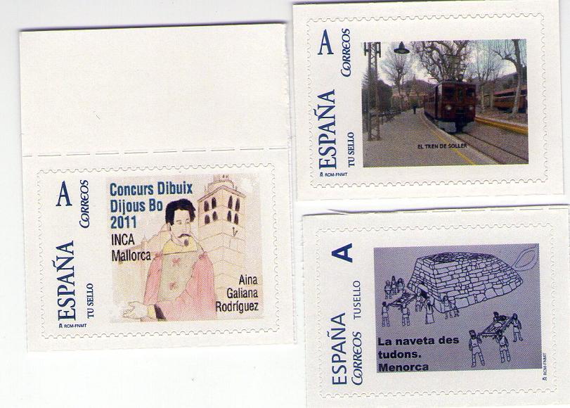 2 sellos mas realizados en este año 2013 en Baleares, el primero ... el tranvia de Soller en Mallorca realizado por la tienda filatelica COFIBA de Palma, y el segundo...... premio de dibujo del Dijous Bo ( fiesta local agricola y ganadera de Inca - Mallorca ) realizado por el Grupo Filatelico de Inca, de este sello se encargaron 100 unidades. saludos cordiales. ALEX.