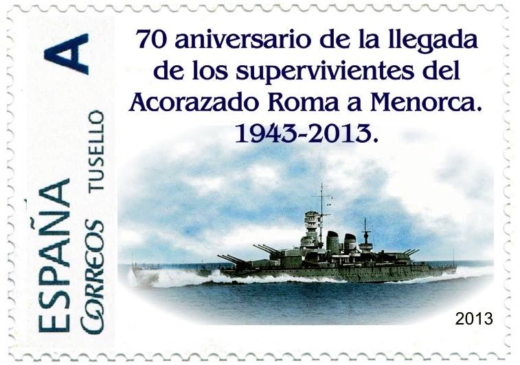 Vuelvo a subir imagen del sello del acorazado Roma, esta vez con la numeración.
