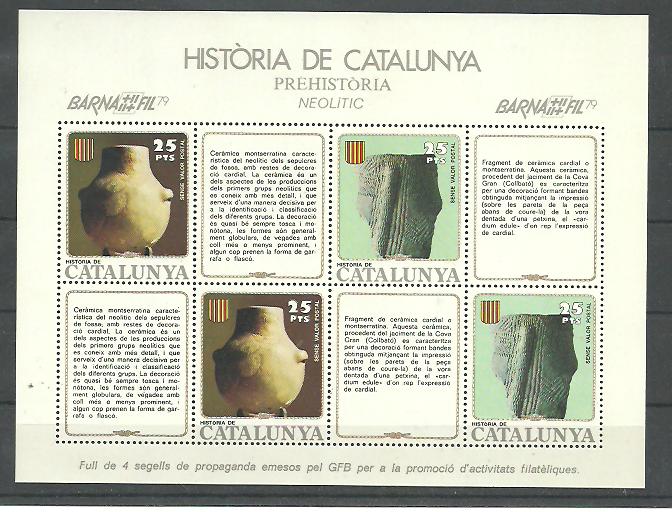 Tal y como sugiere Josep, subo las tres primeras hojitas de la série "Història de Catalunya", editadas por el Gremi de Filatèlia i Numismàtica de Barcelona, con ocasión de la feria Barnafil'79