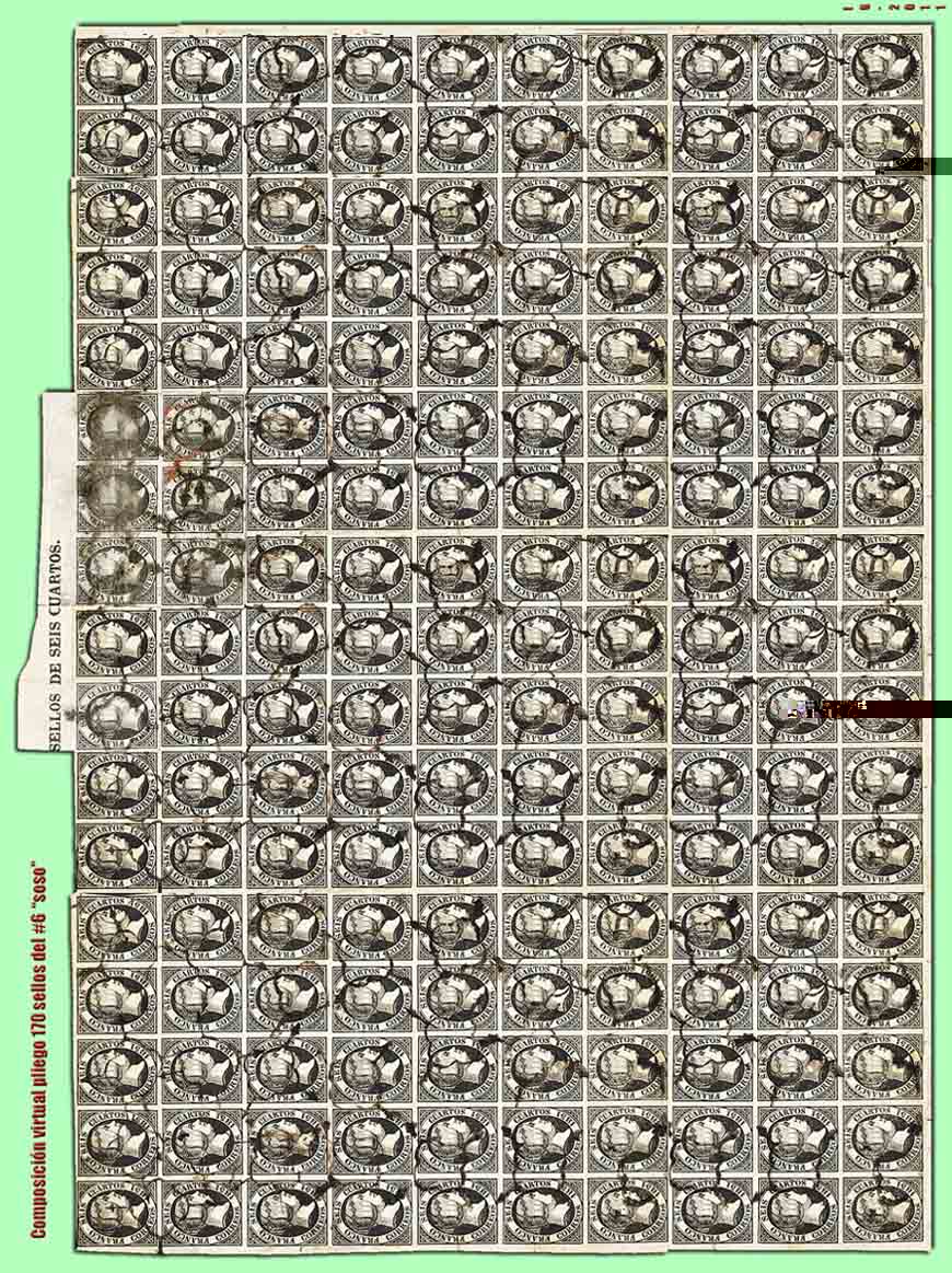 No quiero finalizar sin antes aportar la imagen virtual de cómo era el pliego completo de 170 sellos con parte de su cabecera ... la que he conseguido reunir ... Con esta imagen, a quien interese puede copiarla e imprimirla para incrementar su archivo analógico papelero ... yo lo tengo enorme, o sea que quien quiera queda emplazado a seguir este desvarío ...