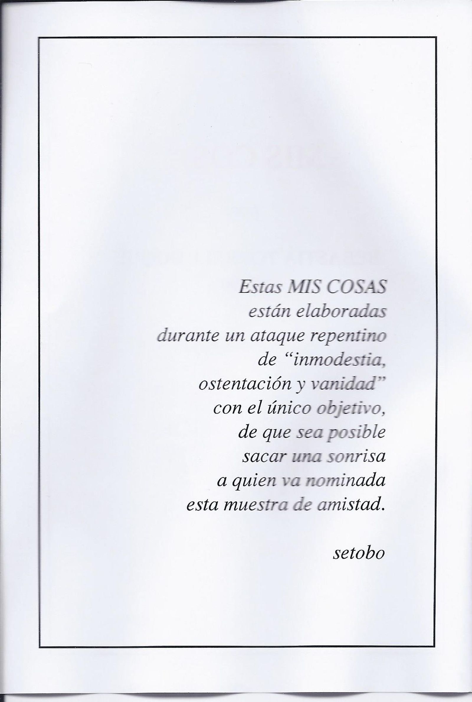 "SETOBO SE NOS HA IDO", es cierto, pero nos quedan sus cosas, sus publicaciones, su recuerdo y su legado (del que a buen seguro tendremos noticias más tarde o temprano), con lo que, mientras le recordemos, siempre estará entre nosotros.