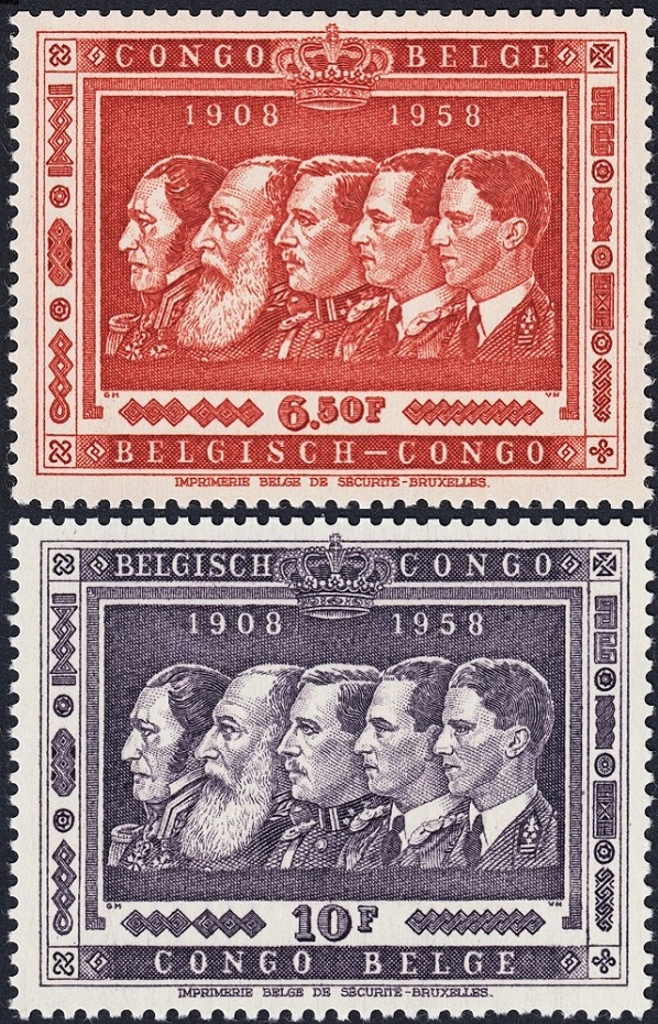 La serie que presentamos en esta entrada corresponde a una emisión del Congo Belga de 1958, dos años antes de que este sufrido territorio africano se emancipase políticamente de Bélgica. La serie, que consta de seis valores, conmemora el cincuenta aniversario de la anexión política de Bélgica, después de los años atroces en los que Leopoldo II administró a este territorio centroafricano como una finca privada.