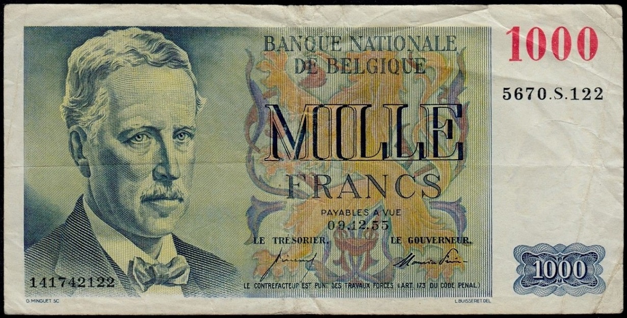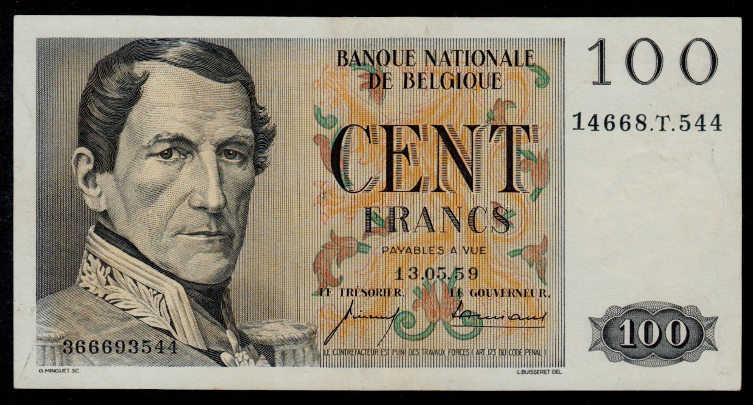 Los cuatro billetes expuestos en esta entrada son la década de los cincuenta del siglo pasado, todos ellos de circulación en Bélgica excepto el último, que corresponde al Congo colonial. Y si admirables, desde el punto de vista artístico, son los retratos de Leopoldo II, no menos lo son los grabados de Leopoldo I y de Alberto I, que mostramos en primer lugar.
