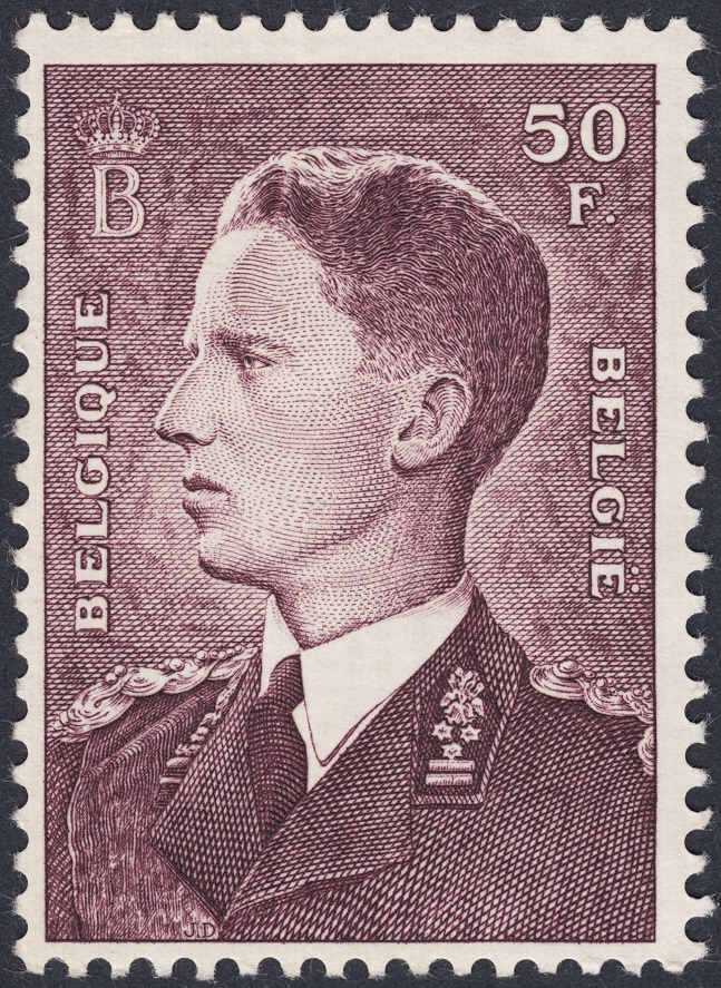 El otro sello que insertamos de De Bast, uno de los cinco valores en dos tamaños de la emisión de 1952, es el primero dedicado a Balduino como rey de Bélgica, y es un retrato ya canónico de la gran filatelia belga. Soberbio.