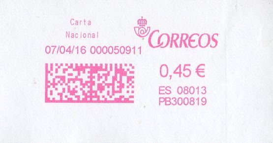 Si no estoy equivocado es el segundo franqueo digital "rojo" que vemos, evidentemente un mal uso, el azul correcto es el del logo corporativo de Correos ¿Se han equivocado de cartucho de tinta? ¿O es porque les sale más barato?