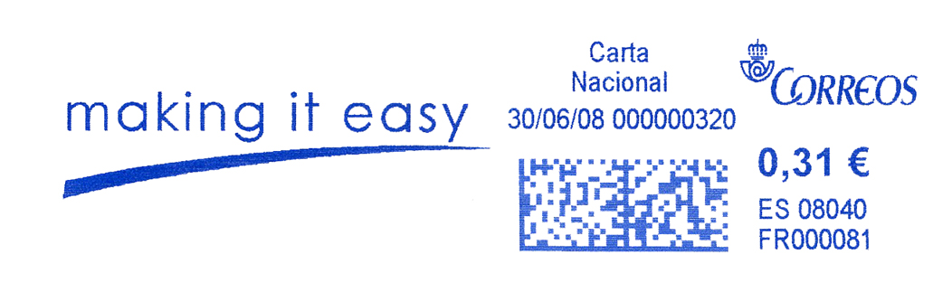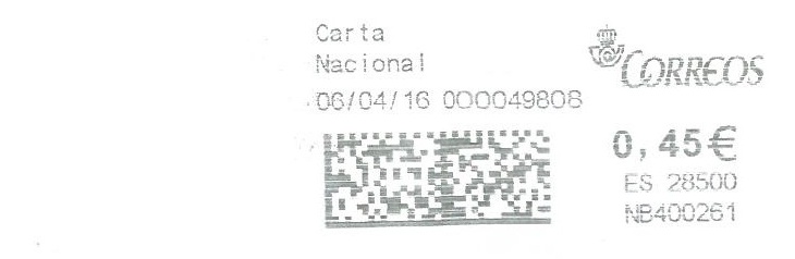 Muestro un franqueo digital que bien podríamos llamar " impronta de las tres noes": No catalogada, no logo, no azul. Y si me apurais el cuarto......no funcionan los filtros de Correos(a veces)