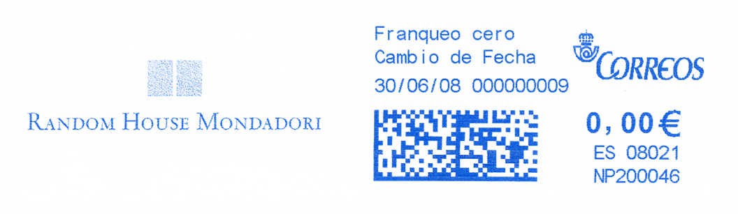 Y una impronta de la máquina NP200105 con la tarjeta original (sin el lema Mil maneras de leer la vida) que no figura en el catálogo.