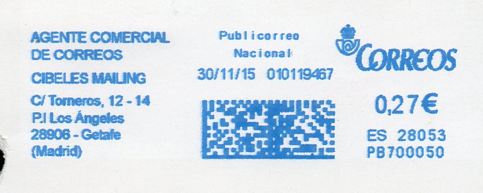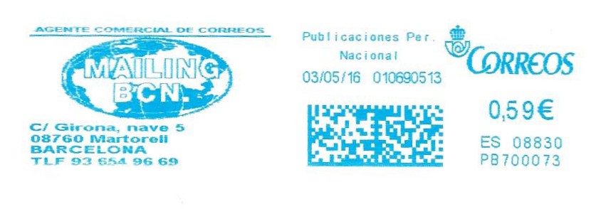 PB 700050. Cambio de relación con Correos de CIBELES MAILING. AGENTE COMERCIAL DE COREREOS. Y ahora que me doy cuenta, aprecio un cambio sutil de dirección.