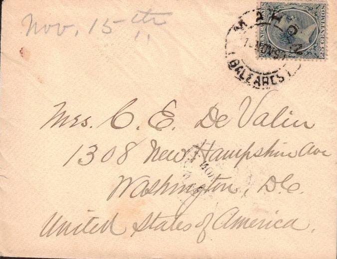 Sigo con sobre de Mahón a EEUU, lo curioso es el sobre que se utiliza de la propia empresa americana, supngo que sería un delegado.