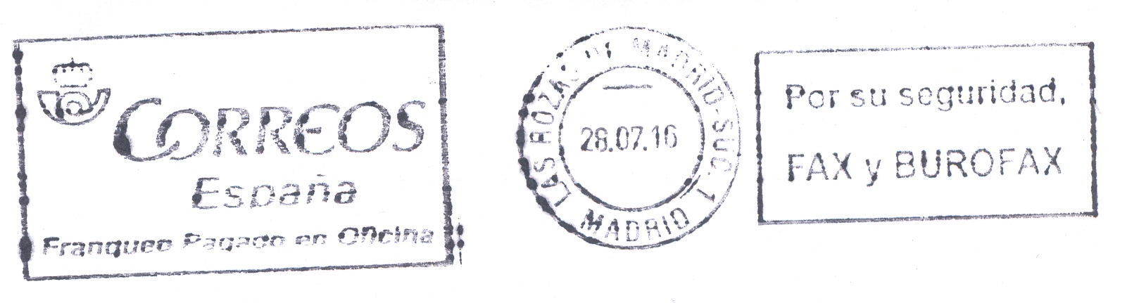 FPO AF-105 LAS ROZAS DE MADRID-SUC. 1 / MADRID / 28.07.16 / Tipo B