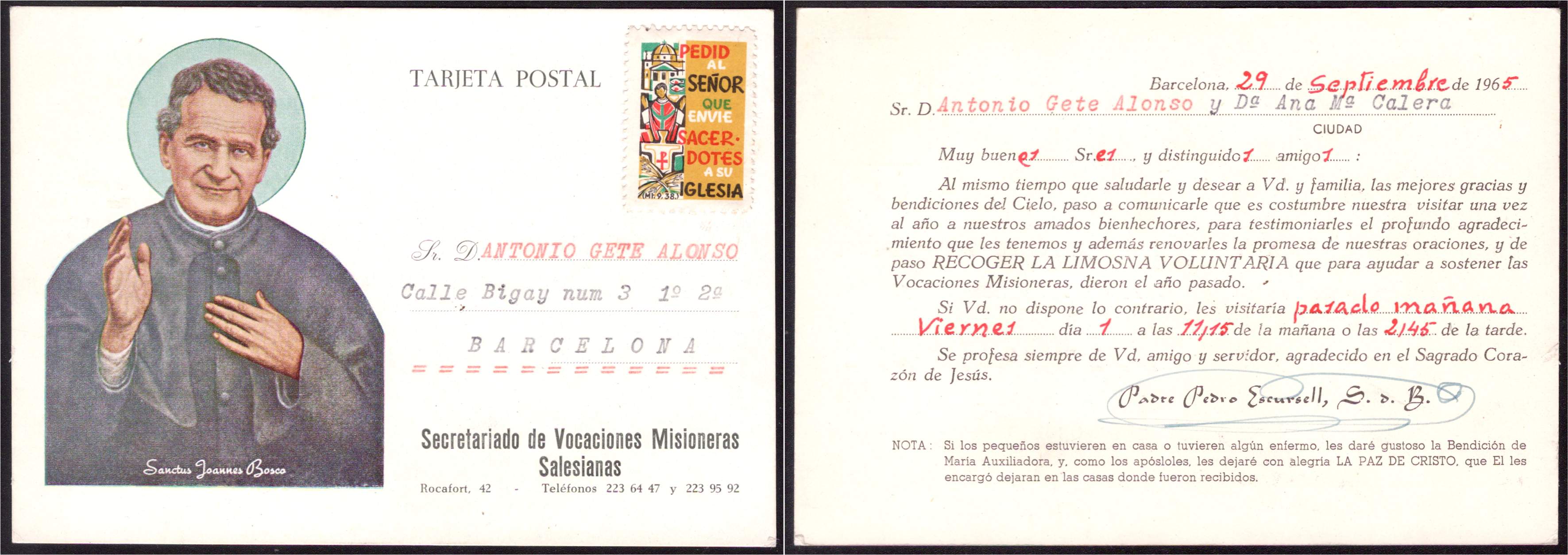 subo ahora un pliego de religiosas de Seminario y una targeta postal con una de ellas utilizada en 1965