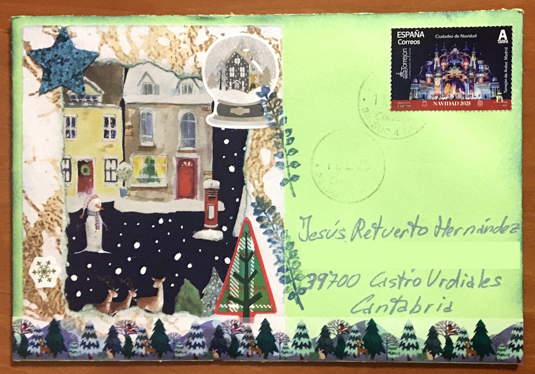Yo también me animo a compartir con vosotros este precioso sobre, acompañado de su respectiva postal navideña, enviado por el querido Rafael A. Raya. Me hacía mucha ilusión recibirlo y no puedo estar más contenta. ¡Un detalle realmente especial! :D