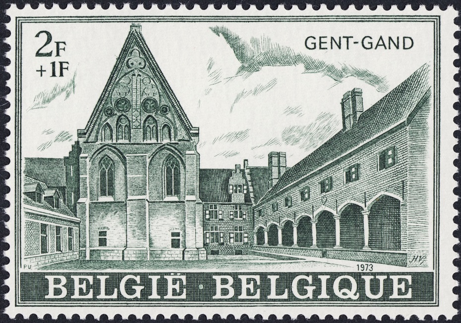 Rematamos la serie de 1973 con los dos sellos que faltan y que completan un conjunto homogenizado por el tamaño y por el diseño atinado de Herman Verbaere. Sellos grabados por Paul Verheyden (Abadía de Bijloke, Gante) y por Henri Decuyper (Iglesia de Saint-Ursmer, Lobbes).