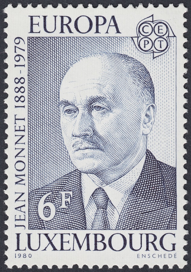 Ya el año siguiente, en 1980, y por sólo circunscribirnos a las emisiones más artísticas, Francia y Luxemburgo emitieron sendos sellos laudatorios de Monnet. El de Francia, cordial y franco, es diseñado y grabado por René Quillivic, en tanto que del magnífico retrato de Monnet impreso por Enschedé, desconocemos quién lo grabó, si bien todo apunta a un grabador francés o austríaco.