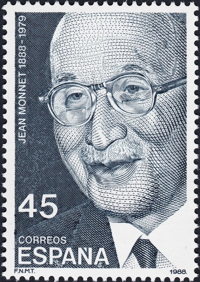 El francés Jean Monnet, uno de los padres de la Europa moderna entendida como unidad política, ha gozado de una muy buena salud filatélica desde su fallecimiento en 1979.