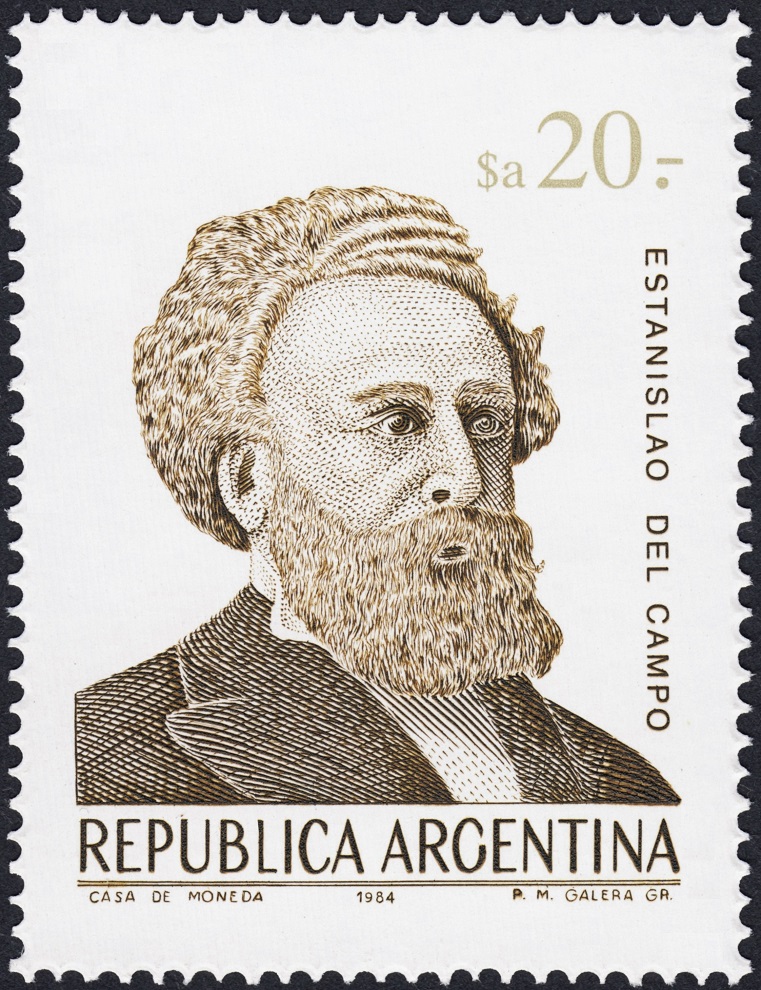 De los retratos apuntados de la década de los ochenta, sí que constan los nombres de los grabadores, si bien tampoco disponemos de más información, aparte del hecho de que todos ellos han participado en el diseño y grabado de muchos de los billetes argentinos del último medio siglo. Sellos grandes y magníficos estos, y muy especialmente el retrato descabellado y genial de Estanislao del Campo, a cargo de Patricia Galera, pero también los grabados del poeta José Hernández (por Sergio Pilosio) y de Ángel Carranza (por Juan Carlos Moyano).