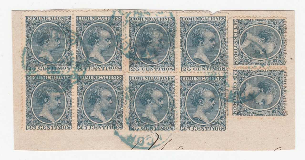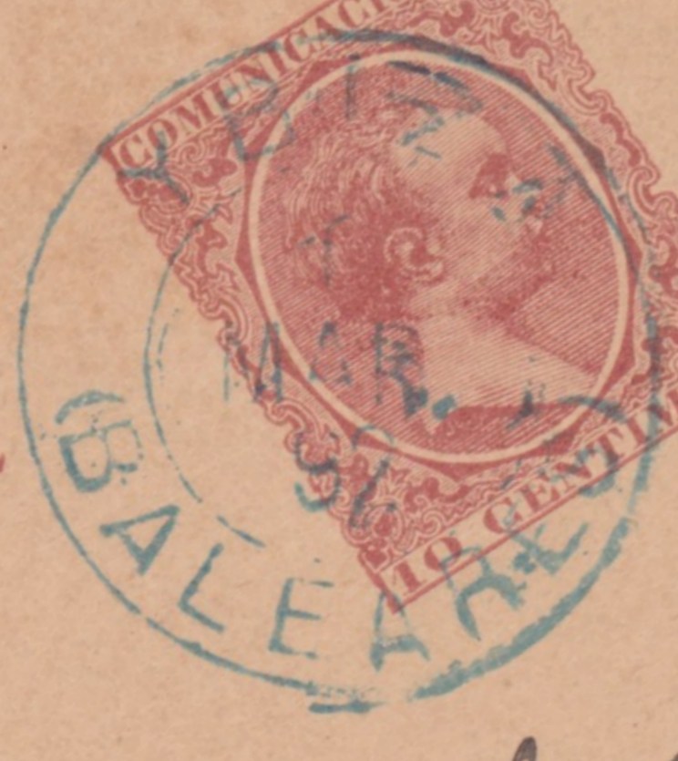 En este caso supongo que existieron los fechadores con puente central usados sobre el Pelón en (además de las localidades de las que tengo ejemplares) Inca, Andraix, Ciudadelka, Felanitx, Manacor y Sóller. De hecho, Inca, Ciudadela y Sóller ya usaron el fechador de tipo trébol sobre el Pelón. En cuanto a los téboles, sobre el Pelón no los he visto de Palma de Mallorca ni tampoco de Mahón, Alcudia, Andraix, Felanitx o Manacor, si bien en casi todas estas localidades dichos fechadores se usaron para cancelar sellos de Alfonso XII. Las mayores dudas las tengo con Alayor y Artá. Las dos localidades fueron estafetas a partir de 1893 pero no tengo evidencias claras que demuestren que en ellas se usaron los fechadores con puente central y, probablemente menos aún, los de tipo trébol.