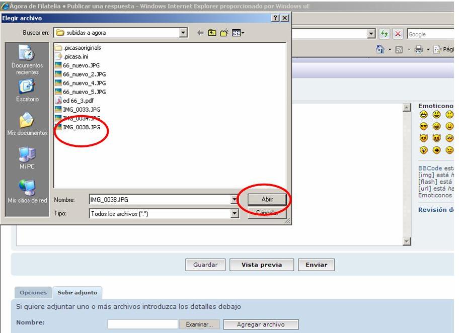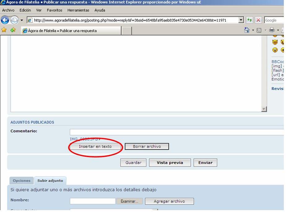 Si quieres seguir subiendo fotos, vuelves al punto uno, pestaña de Subir adjunto. Se pueden subir hasta 5 imagenes en el mismo post. Y ya lo de siempre, vista previa o enviar el post