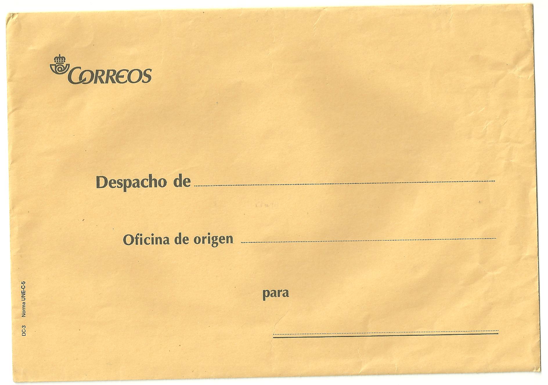 Descripción: Sobre tipo bolsa con solapa a la derecha para envio ordinario entre oficinas y departamentos de uso exclusivo interno de correos.