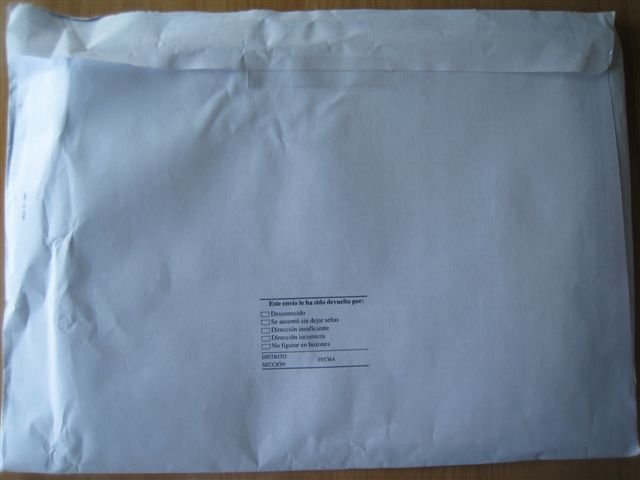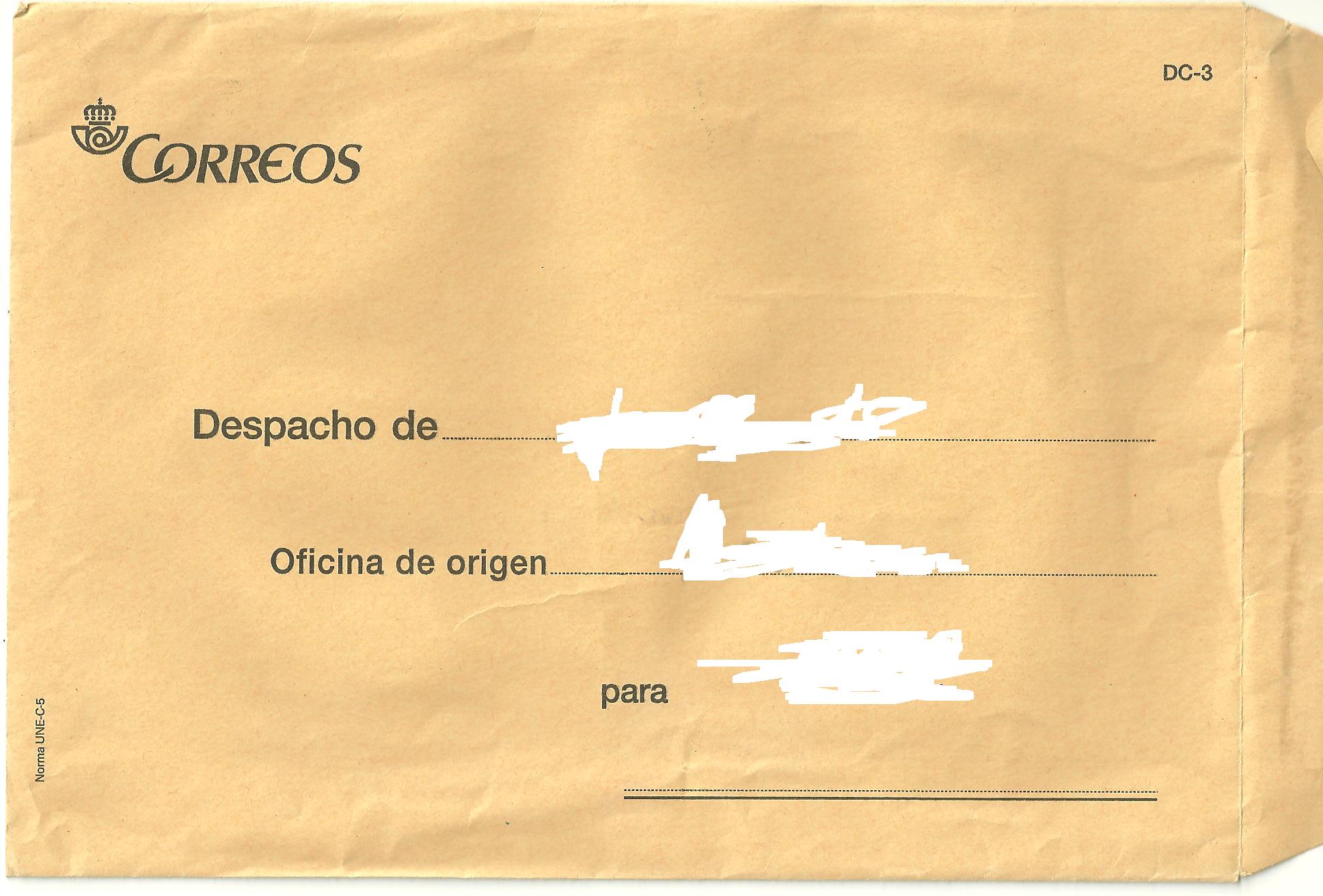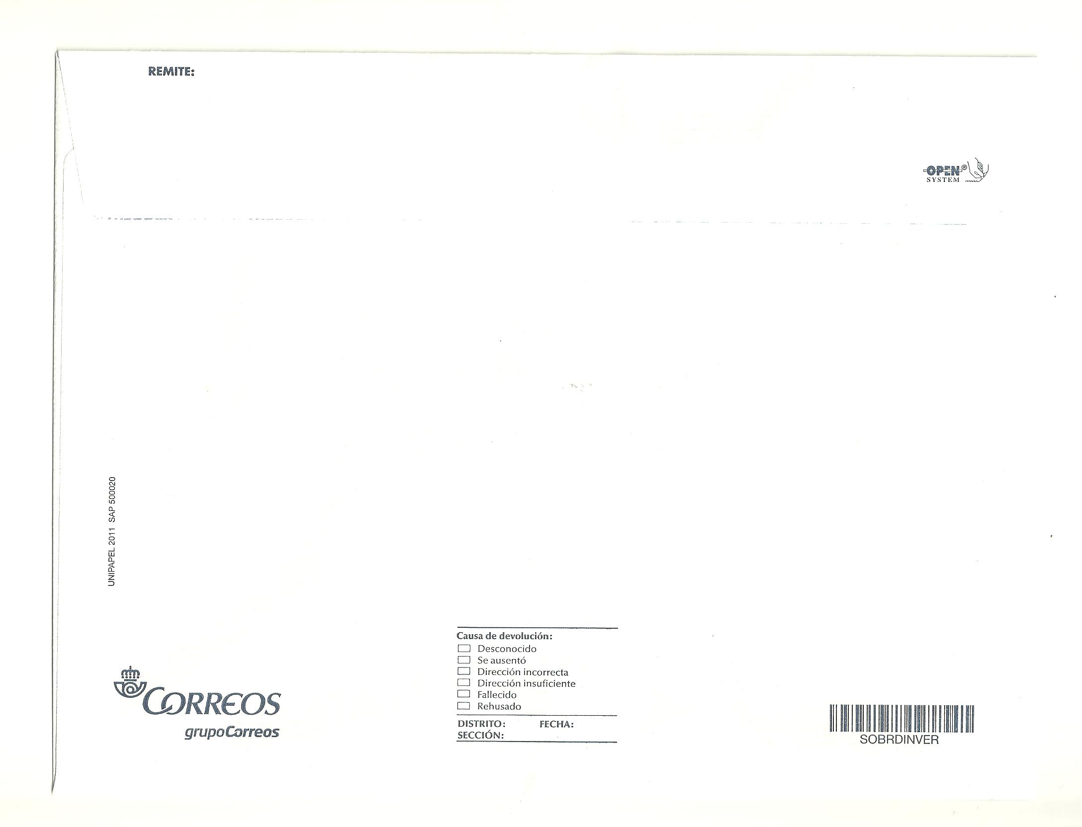 Otras características: Con fecha del 03/04/2012 se adjudicó un concurso de suministro de 50.000 unidades de este sobre a Unipapel Transformación y Distribución, S.A. durante los años 2012 y 2013.