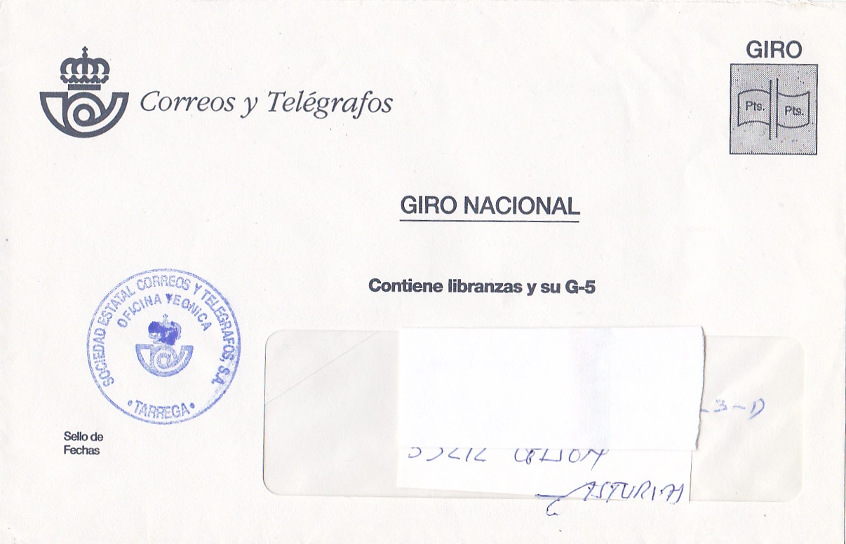 Servicio de giro nacional de 20,5 x 13 centímetros: