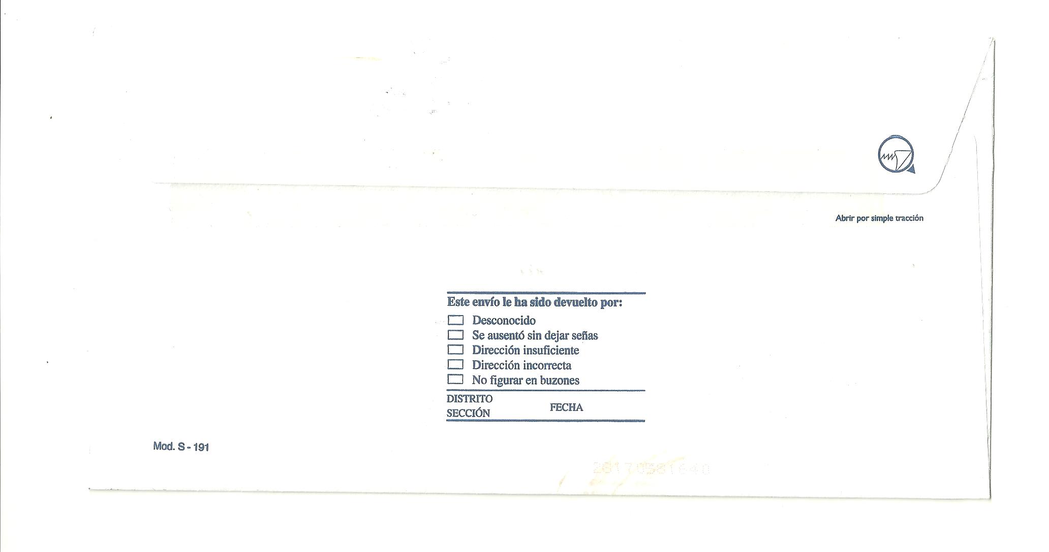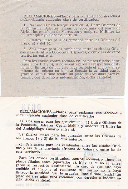 Por el reverso lleva un talón para que anotar, por parte del cartero, todas las incidencias de la entrega. Hoy en día con las máquinas PDA ya no se suele utilizar.