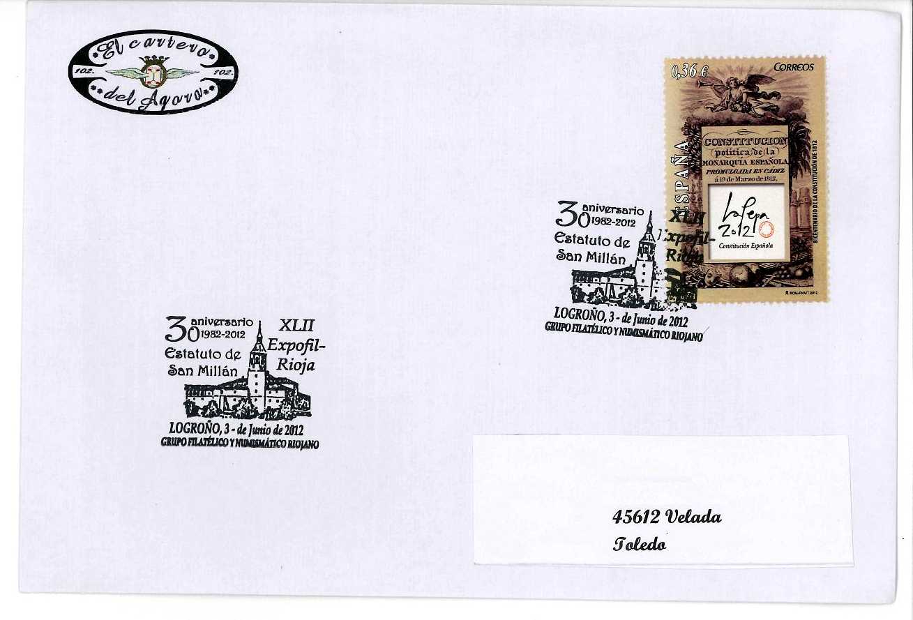 desde aqui quiero agradecer ese bonito detalle y ese doble matasellos del 30 aniversario Estatuto de San Millan por parte del grupo filatelico y numismatico Riojano