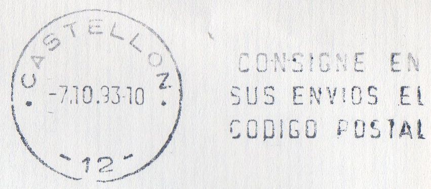 Otro tipo es este de un solo circulo (no dos círculos concéntricos) y que creo que es exclusivo de las oficinas principales de las capitales de provincia y centros de clasificación. El cajetín desaparece y la tipografía del fechador es muy diferente del fechador anterior: