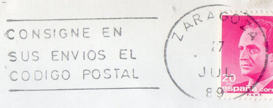 BILBAO / 1-ENE-89 Como, curiosidad, muestro el de ZARAGOZA, donde las letras de la leyenda son mas pequeñas y están mas separadas: