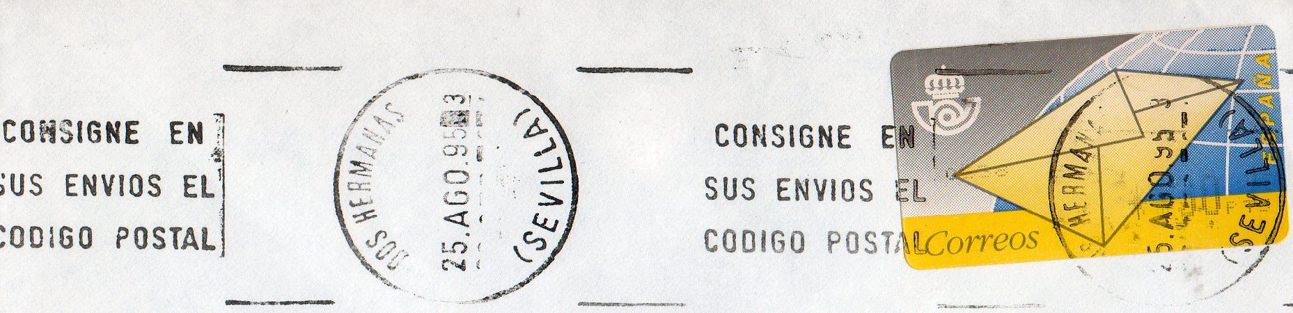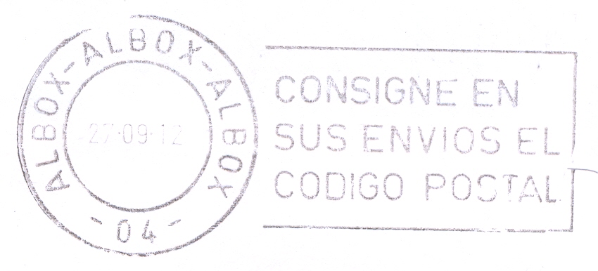 Rescatemos éste hilo...con un franqueo muy reciente. Creo que, además, tiene una variante (los más expertos pueden asegurarlo ó no), en el círculo interior del fechador, el cual, no se cierra, sino que son dos, casi, media luna.